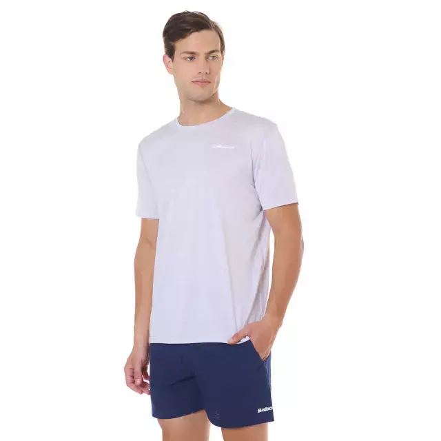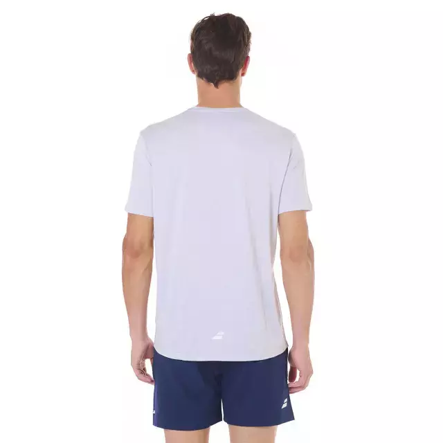 Com design simples e funcional, a camiseta traz o icônico logo Babolat estampado no peito e nas costas, reforçando a identidade esportiva e o estilo do atleta.