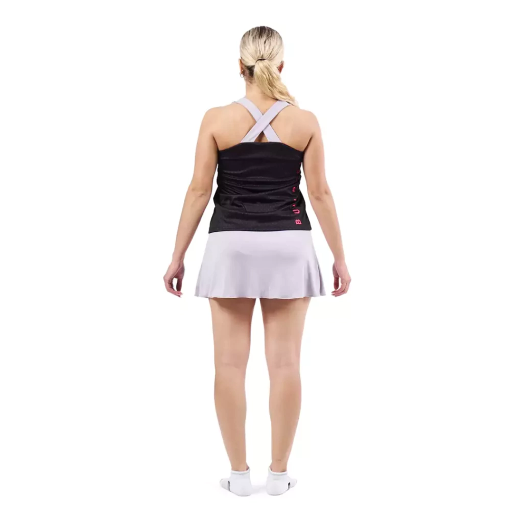O Conjunto Bullpadel Ada em cores cinza e preto é a escolha perfeita para mulheres que desejam unir estilo e funcionalidade em suas atividades esportivas. Este conjunto é composto por uma musculosa e uma pollera com short, ideal para mantê-la fresca e confortável durante treinamentos ou partidas.