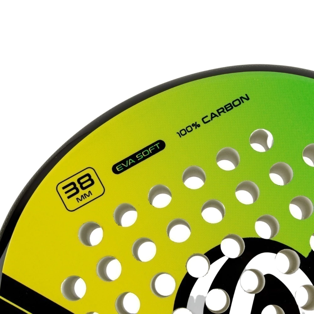 - Espessura de 38 mm com Núcleo EVA Soft: Absorve os impactos, proporcionando conforto e uma saída de bola explosiva.