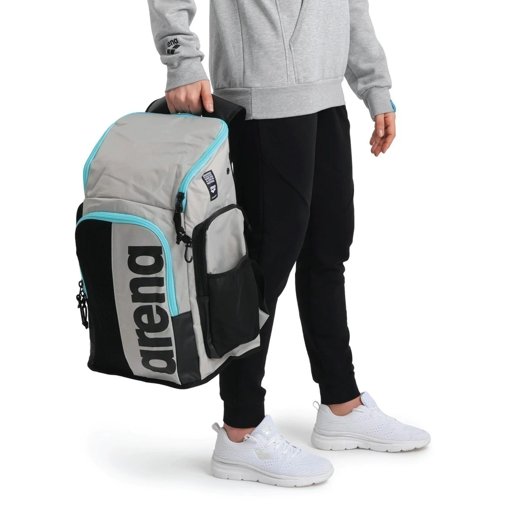 Capacidad: Con un espacio de 45 litros, es ideal para llevar todo lo necesario para tus entrenamientos y competencias, desde trajes de baño hasta toallas y accesorios.