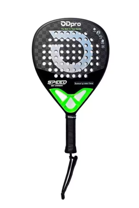 La Paleta de Pádel Odpro Speed 12K Carbon es la opción ideal para jugadores que buscan un equilibrio perfecto entre potencia y control en su juego. Su diseño sofisticado, con un acabado en brillo y relieve 3D, permite realizar golpes con efecto de manera efectiva, mejorando tu rendimiento en cada partido.