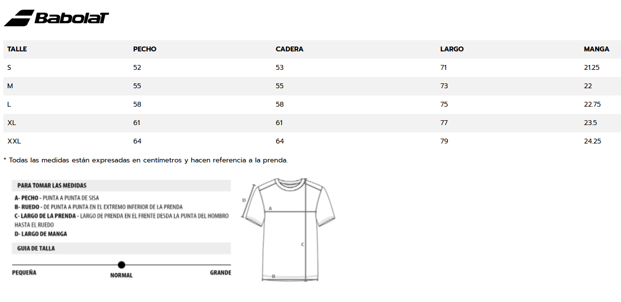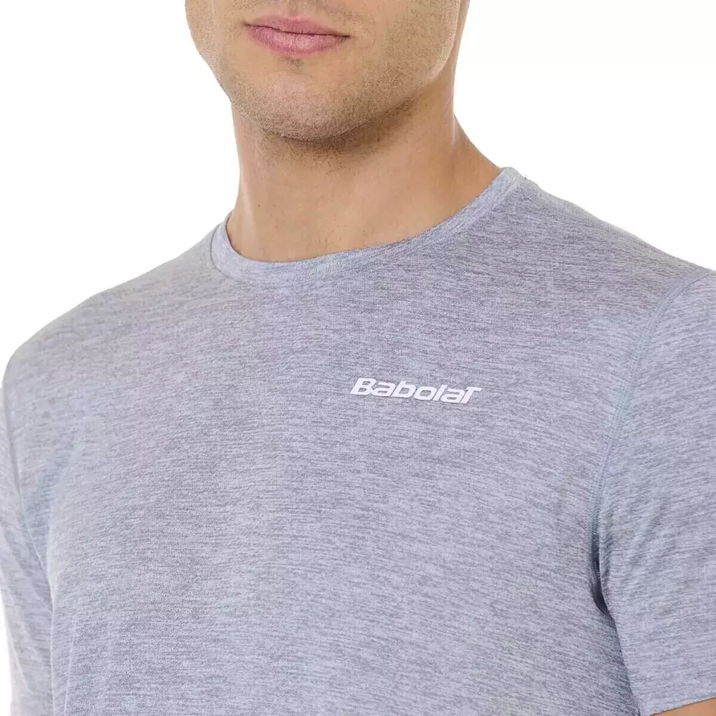 Su diseño presenta un corte regular que se adapta cómodamente al cuerpo masculino adulto, mientras que las costuras planas minimizan el roce y evitan irritaciones durante el movimiento. Además, el logo de Babolat en el pecho y en la espalda destaca su identidad deportiva.