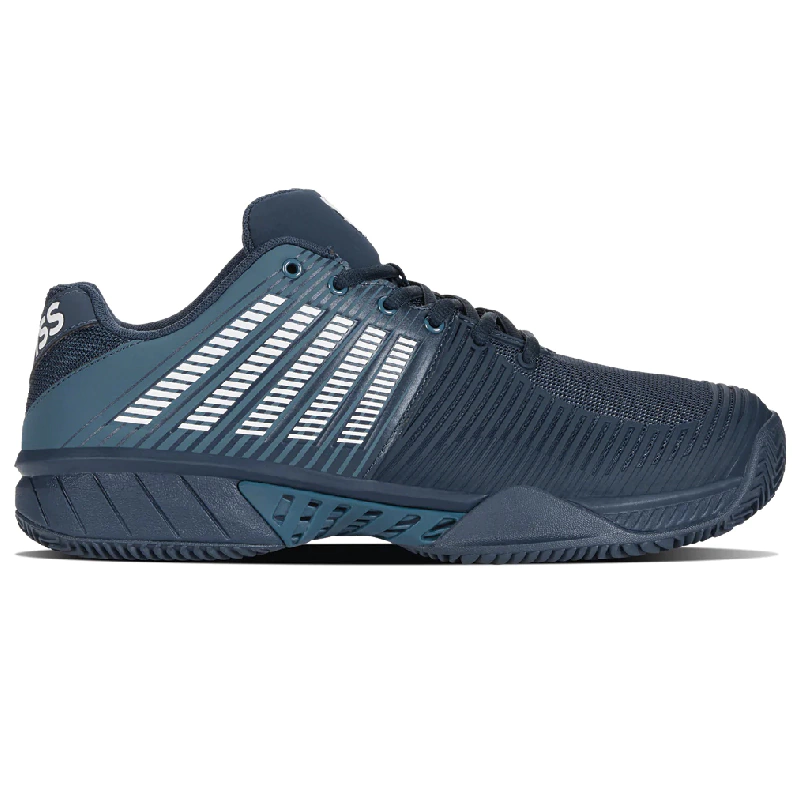 Las zapatillas K-Swiss Express Light son un modelo ligero diseñado específicamente para ofrecer un rendimiento óptimo tanto en la cancha de tenis como en la de pádel, asegurando la comodidad del jugador. Su parte superior incorpora DuraWrap Flex, una malla de RPU rediseñada que ofrece un soporte flexible y una protección eficaz contra el desgaste por arrastre. Además, su interior ha sido mejorado con un ajuste en el tobillo que proporciona estabilidad adicional y una sensación de comodidad durante el juego. La suela, fabricada con caucho de alta densidad, garantiza una tracción excepcional en todo tipo de superficies.